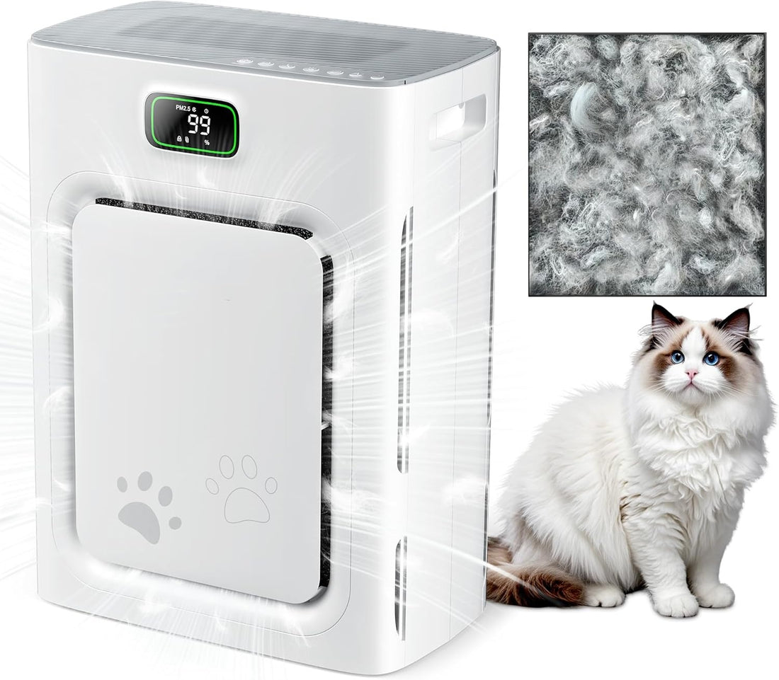 Pro-Level Air Purifier for Home Pets, No More Odor, H13 True HEPA, Auto/Pet Mode & Washable Pre-Filter