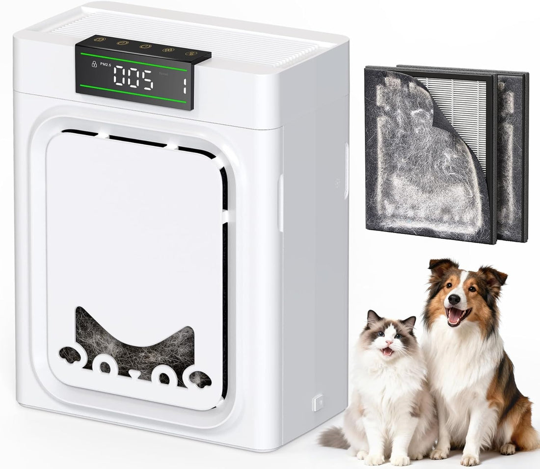Pet Air Purifier for Home Large Room 2500 Sq Ft with Dual-Sided Intake, Washable Pre-Filters